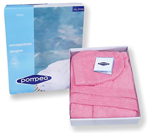 Accappatoio Pompea Junior Bambino Bambina Ragazzo Ragazza con Cappuccio anni 4-6 - 8-10 - 12-14 Spugna di Cotone 380gr/sqm In Scatola (Rosa 0004, 12/14)