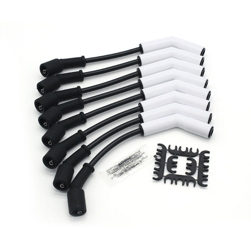 Specifiche: Applicazione: Motori GM LS/LT Colore: Bianco & Nero Dimensioni: 26,5*11,5*5 cm/10,4*4,5*2 pollici Peso: 770 g/1,7 libbre Materiale: silicone Materiale dello stivale: ceramica Resistenza: 500 Ohm per piede Valutazione della temperatura dello stivale: 2000 gradi Angolo dello stivale della candela: 135 gradi Nucleo: ferro-spirale Diametro filo: 8 mm Codice produttore: 9070C Serie filo: Serie filo Valutazione temperatura filo: 600 gradi Elenco dei pacchetti: 8 volte;