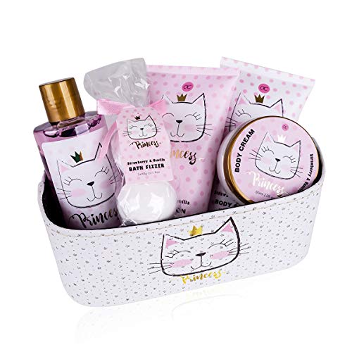 Accentra - Set Regalo Princess Kitty Per Bambina, Con Aroma Alla Fragola E Alla, 7 Pezzi, Colore: Rosa, Vaniglia