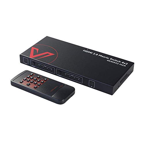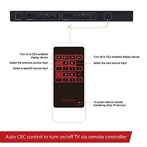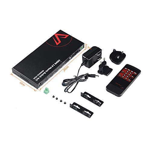 【4K HDMI Matrix 4x2 】La matrice HDMI 4x2 offre 4 ingressi e 2 uscite. Supporta alta risoluzione fino a 4K@60hz 4:4:4, standard HDMI 2.0 con HDR10 e effetto 3D. La matrice supporta la riproduzione simultanea 4K e 1080P. La risoluzione di uscita di diverse uscite può essere diversa.