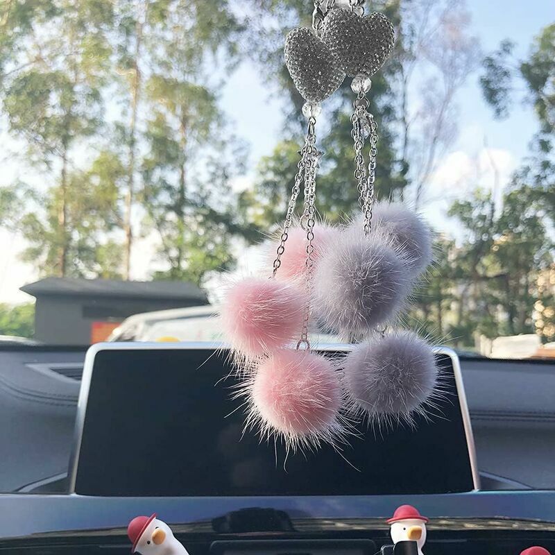 Specifiche dell'ornamento per auto: Quantità: 2 pezzi Colore: grigio, rosa Lunghezza: 28 cm/11,02 pollici Materiale: strass, fibra sintetica < br /> >Elenco dei pacchetti: 2 ciondoli accessori per auto