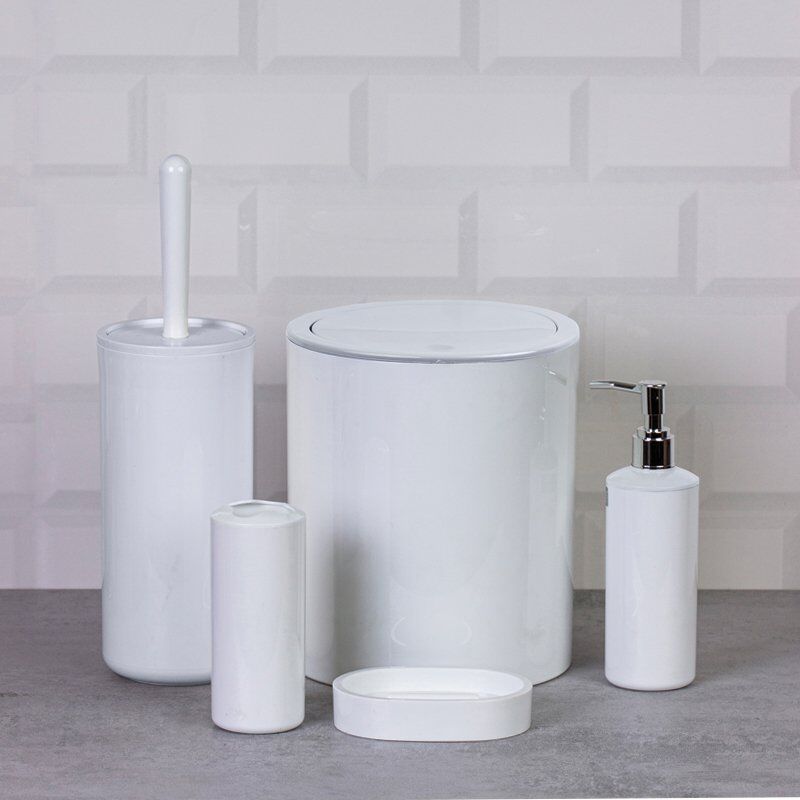 Set Accessori da Bagno Bianco-Lucido in Abs - Spazio Set Accessori da Bagno con 1 Portasapone 1 Portaspazzolino 1 Dispenser Sapone 1 Portascopino 1 Cestino portarifuti Tondo - Spazio Tipologia: Set Accessori da Bagno Serie: Tondo Marca: Spazio Materiale: Abs Colore: Bianco-Lucido Installazione: Da Appoggio Categoria Prodotto: Accessori bagno