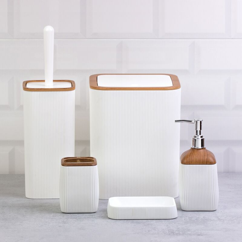 Set Accessori da Bagno Grigio-Rigato in Abs - Spazio Set Accessori da Bagno con 1 Portasapone 1 Portaspazzolino 1 Dispenser Sapone 1 Portascopino 1 Cestino portarifuti Quadro - Spazio Tipologia: Set Accessori da Bagno Serie: Quadro Marca: Spazio Materiale: Abs Colore: Grigio-Rigato Installazione: Da Appoggio Categoria Prodotto: Accessori bagno