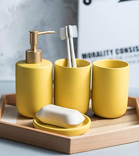 Set di accessori per il bagno, set di accessori da bagno in ceramica di lusso, dispenser per sapone/lozioni, tazza per spazzolino da denti, portasapone, per casa, hotel, bagno, piano di lavoro (set da