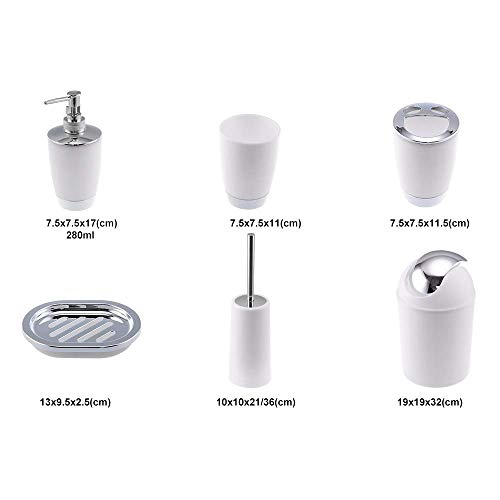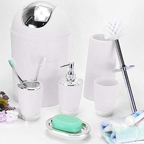 Set di accessori da bagno da 6 pezzi, con bicchiere, porta spazzolini, cestino, portasapone, dispenser di sapone, colore bianco