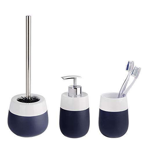 Set accessori bagno, 3 pezzi, scopino, contenitore spazzolino, dispenser sapone, Malta Blue - WENKO