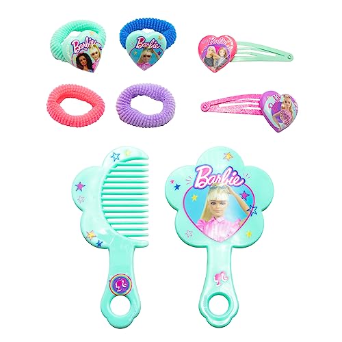 Accessori per capelli Barbie, 8 pezzi, elastici, specchio, pettine, mollette, con borsetta