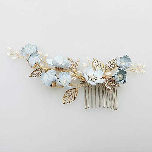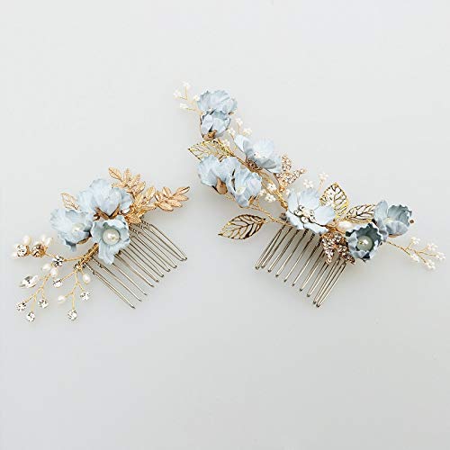 Accessori capelli,fermaglio,acconciature,fermaglio sposa,Lusso 4 pezzi fiore blu pettini per capelli copricapo da sposa accessori per capelli da sposa foglie gioielli per capelli perni per capelli