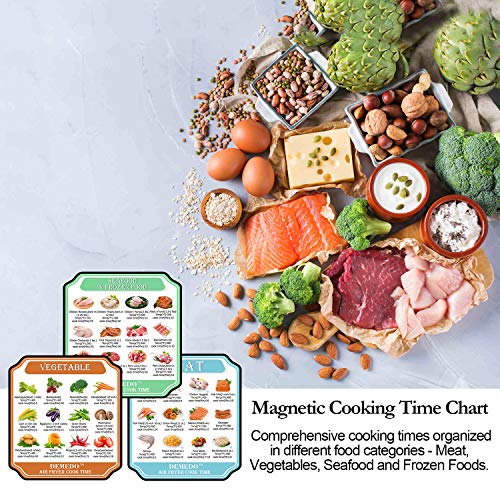 [Il pacchetto include] Il set di accessori per friggitrice ad aria comprende teglia per pizza, Teglia Per Torta, griglia multiuso per spiedini, supporto in metallo, griglia per tostare, pinze per alimenti, fodere per friggitrice ad aria da 100 pezzi (carta pergamena perforata), spazzola per olio di silicone, pinza per padella, tappetino in silicone, Muffe Del Morso Dell'uovo,3 adesivi magnetici per il tempo di cottura. E il ricettario di ricette della friggitrice ad aria in omaggio.