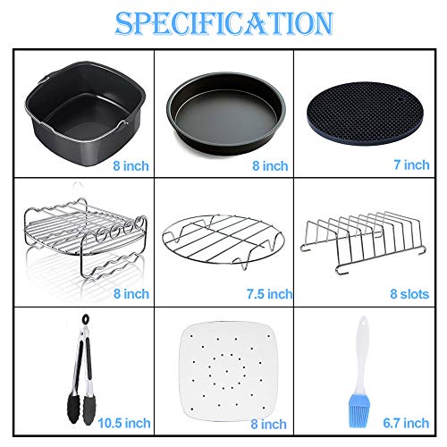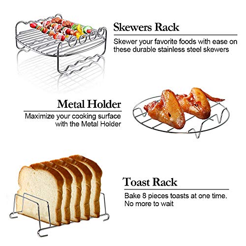 Espandi i tuoi piatti da cucina - Se ami la tua friggitrice, immagina di poter realizzare più capolavori culinari con il nostro set di accessori! Cuocere la vostra torta preferita nella tortiera della torta, cucinare deliziosa pizza nella teglia per pizza, massimizzare la superficie di cottura con il supporto in metallo e fare spiedini con lo scaffale multiuso Il libro di cucina regalo ti aiuterà a cucinare più piatti.