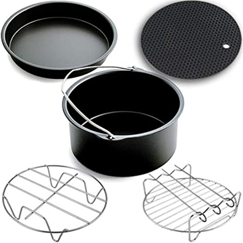 Accessori per friggitrici ad aria da 6 pollici / 7 pollici / 8 pollici 9 pezzi, vassoio per pizza Griglia per toast Rack per vapore Pad isolante 3.2QT-5.8QT Parti della cucina domestica (7 pollici)