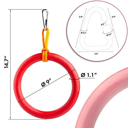 Accessori linea Cateam Ninja - Grandi anelli da ginnastica Set di 2 con moschiners - Anelli Monkey bar per corsa ad ostacoli nel cortile