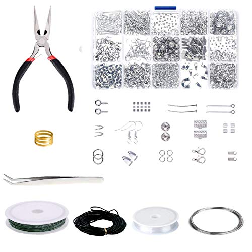 JZK Set Accessori minuteria per bigiotteria Creazione di gioielli Kit con pinze e cordino per bigiotteria Orecchini Fai da Te Creazione braccialetti collane