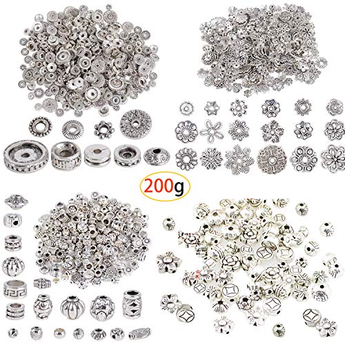 Accessori Pendenti in Argento Tibetano,Perline Distanziali in Lega Stile Tibetano per Gioielli Fai Da Te,Accessori per Gioielli Vintage Fai-da-te(4 Pacchetti, 200 g)
