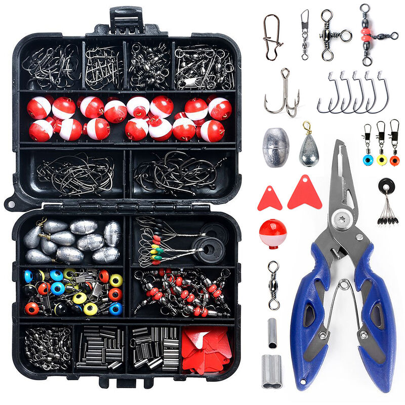 Vieni con una scatola da pesca e una pinza multifunzione, nella confezione sono inclusi 263 accessori per la pesca, come ami da pesca, pesi per platine, galleggianti, fogli di plastica, bottoni a pressione, girelle a scatto, ferma bobber, scivoli per platine, manicotto a crimpare, ecc. Caratteristiche: 263 pezzi di arnesi da pesca nella confezione contengono tutti i tipi di accessori da pesca necessari per diverse occasioni di pesca. Pinza multifunzionale, può essere utilizzata per rimuovere il gancio, tagliare il filo, estrarre l'anello d'acciaio, afferrare saldamente il pesce, ecc. Scatola in ABS solida e resistente con una forte resistenza alla corrosione, le dimensioni compatte sono facili da trasportare. Le griglie separate mantengono tutto ben organizzato, il coperchio trasparente ti aiuta a identificare rapidamente ciò di cui hai bisogno. Specifiche: Materiale: ABS + acciaio inossidabile Colore della sfera: rosso e bianco/arancione (opzionale) Dimensioni del pacchetto: 12 * 9,5