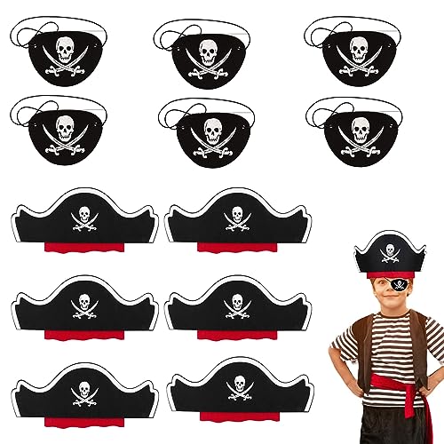 Benda per Occhio Da Pirata: 6 cappelli pirata, 6 toppe per occhi pirata, 12 pezzi in totale, sufficienti per le vostre esigenze.