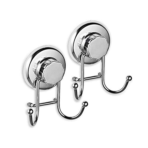 ZEK Accessori-Potente gancio per ventosa sottovuoto-Porta asciugamani, accappatoio e scatola in luffa-Ganci in acciaio inossidabile per bagno e cucina, porta asciugamani, cromato (2 pezzi)