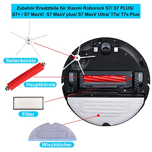 Accessori di Ricambi per Roborock S7/ S7 plus/ S7+/ S7MaxV plus/ S7MaxV/ T7s Kit Recambios Vacuum con Spazzola Principale, Salviette, Filtro Hepa, Spazzola Laterale, Spazzola Pulizia, Cacciavite