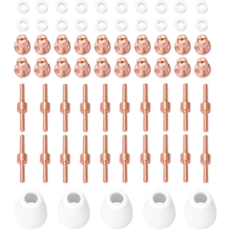 Punta / ugello dei consumabili per il taglio al plasma. Raccordo punta / ugello dal design standard per macchina da taglio al plasma 40A. Caratteristiche: Realizzato in materiale di alta qualita, pratico da usare. Materiali di consumo a basso costo utilizzati sulle torce di saldatura. I consumabili elaborati con precisione saranno combinati bene con la torcia da taglio e la macchina grazie all'elevata compatibilita. Avere una buona conduttivita termica. Elevata resistenza meccanica. Facilissimo da usare. Lunga durata. Specifiche: Materiale: rame rosso + ceramica Taglia: elettrodi: 38 * 8 * 4 mm / 1,5 * 0,3 * 0,2 pollici ugello: 15 * 11 * 7 mm / 0,6 * 0,4 * 0,3 pollici schermatura: 30 * 23,2 * 9 mm / 1,2 * 0,9 * 0,4 pollici anelli di correnti parassite: 8,5 * 5,6 * 5 mm / 0,3 * 0,2 * 0,02 pollici Formato del pacchetto: 140 * 120 * 30 mm / 5,5 * 4,7 * 1,2 pollici Peso del pacchetto: 390 g / 13,8 libbre Lista imballaggio: 20 * elettrodi 20 * ugelli 5 * Schermatura 20 * Anelli di correnti