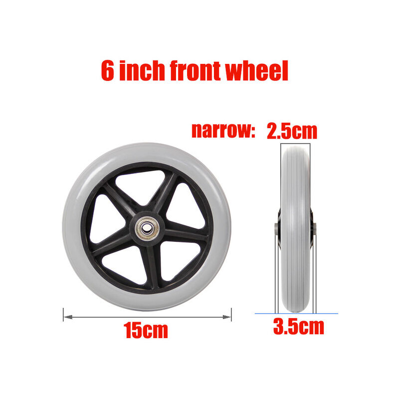 6/7/8 pollici Sedia A Rotelle Ruota Anteriore Accessori 6 "7" 8 "solido Universale a prova di Esplosione Ruota per Sedia A RotelleIl prezzo è per una singola ruota. Se avete bisogno di due, si prega di prendere due copie!Nota: l'altezza tra i cuscinetti su entrambi i lati del 6-pollici narrow ruota è di 3.5 centimetri