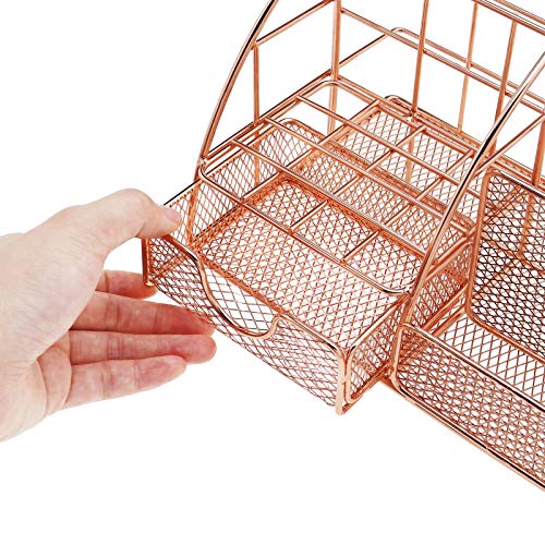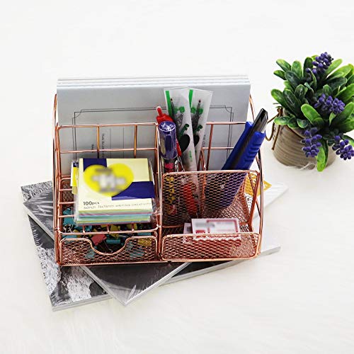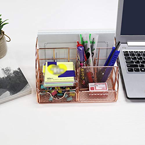 Accessori da scrivania in rete oro rosa per documenti e posta, con cassetto in rete, 22 x 14 x 12,5 cm