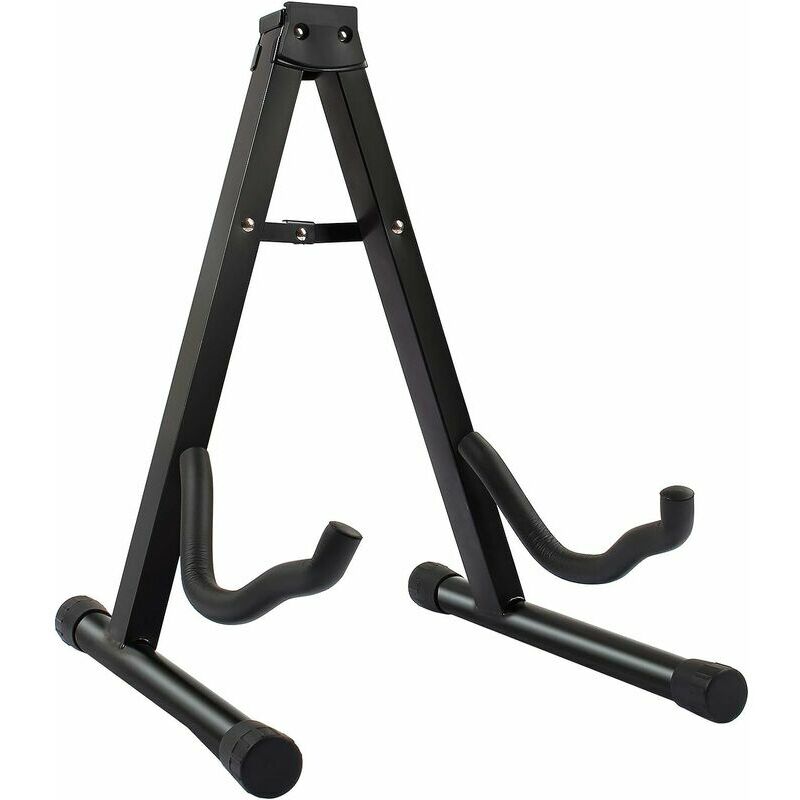 Supporto per chitarra robusto con telaio A: Costruito in acciaio, questo supporto per chitarra è abbastanza forte da contenere il tuo strumento e stare in piedi per i viaggi e l'uso quotidiano. Design pieghevole e facile da montare: si piega in pochi secondi per una conservazione compatta e una facile trasportabilità. Questo supporto per chitarra/elettrico/acustico/basso è appositamente progettato a forma di A-frame e può essere facilmente piegato o assemblato in pochi secondi. Leggero ma protettivo: il supporto per chitarra ha uno strato di neoprene sulle braccia per proteggere la tua chitarra quando sei seduto. Se stai cercando un supporto per chitarra che non sia solo leggero ma anche protettivo, il nostro supporto per chitarra sarà la scelta giusta per proteggere perfettamente la tua chitarra o strumento in tutti i punti di contatto con il telaio. Styling e utilità: il supporto per chitarra con finitura nera opaca si abbina perfettamente a qualsiasi design di chitarra. Lo standard
