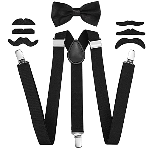 Accessori da uomo anni '20 Set di Panama Fedora Cappelli Y Back Bretelle regolabili Papillon Baffi e orologio da tasca per costume anni '20