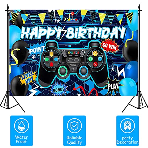 Accessori per Videogiochi per Feste,Pacchetto Sfondo per Videogioco Festa di Compleanno,Banner di Sfondo di Buon Compleanno a Tema Gioco 150 X 100 cm