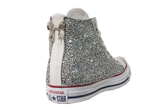 Accessoriato Converse all Star Alte Glitter Argento Bianco Optical White Vintage (Prodotto Artigianale) (43 EU)