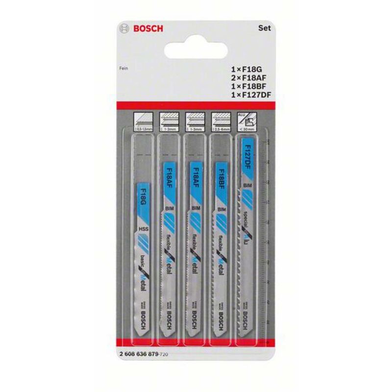 Dettagli tecnici Contenuto 5 pz. Idoneità del materiale Metallo Tipo prodotto Lama seghetto alternativo Kit di lame per seghetto alternativo in metallo, 5 pezzi, gambo fine 5 pz. Il kit di lame per seghetto alternativo in metallo è essenziale per i lavori in metallo. Contiene fogli per tagli in metallo e tagli solidi in lamiera metallica, tubi e profili. Sono compatibili con seghe a tazza con un sistema a stelo fine. Contenuto del kit: F 18 G Basic for Metal, F 18 AF flessibile per Metal, F 18 BF flessibile per Metal, F 127 DF Special for Alu Testo tradotto automaticamente Incluso nella consegna SetF 18 G Basic for Metal F 18 AF flessibile per metallo F 18 BF flessibile per metallo F 127 DF speciale per alluminio Requisiti di sistema null