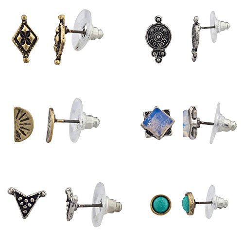 Lux Accessories, set di orecchini assortiti da donna, in stile tribale, confezione da 6 paia