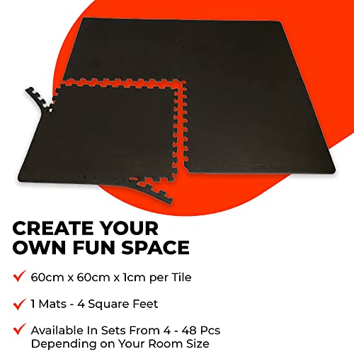 JSG Accessories - 4 protezioni per pavimenti, per interni ed esterni, design incrociato, double-face, adatte per palestra, campi di gioco, allenamento, yoga, 1,5-17,8 m2, colore: nero, Nero, 16 Mats - 64 Square Feet