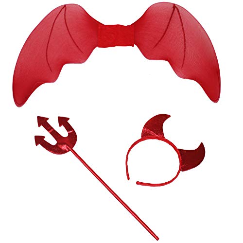 Il Set Diavoletta 3 elementi è adatto per dare un tocco di fantasia al tuo costume di Halloween. Il set comprende frontino, tridente e ali. Il set è composto da ali realizzate in tulle, frontino e tridente in tessuto laccato.