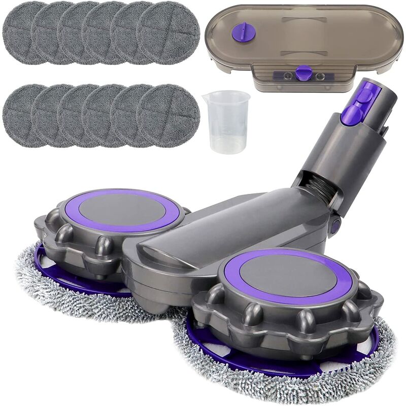Modelli compatibili - La testina Dual Spin è perfettamente compatibile con Dyson V7, V8, V10, V11 e normali aspirapolvere. compatibile. Con la testina aggiornata, puoi aspirare e pulire il pavimento contemporaneamente, rendendo la pulizia super facile. 【Multifunzionale】 Testina multifunzionale, mop asciutto, mop bagnato, aspirapolvere e cera, quattro in uno, risolvono più problemi di pulizia contemporaneamente. (Si prega di notare che questo accessorio mocio non è un aspirapolvere umido, si prega di non utilizzarlo per aspirare direttamente l'acqua) 【Pulizia efficace】Con il potente motore a doppio mandrino, che offre un'elevata velocità di rotazione e 150 giri/min avanti e indietro, rimuove rapidamente le macchie ostinate dai pavimenti di casa e cucina, il pavimento è altrettanto pulito solo se nuovo, un must per la tua casa. 【Fornitura】Questo mop galleggiante è adatto a tutti i pavimenti duri come piastrelle, marmo e pavimenti in legno. La confezione include 12 cuscinetti per mop / 1
