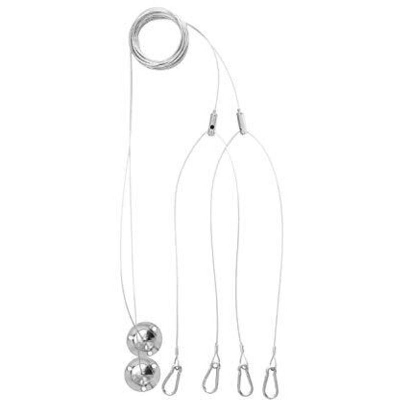 Kit di sospensione per pannelli. Caratteristiche del prodotto: Cavi in acciaio regolabili, lunghezza massima di ciascuno: 1,5 m. Vantaggi del prodotto: Lunghezza del cavo regolabile fino a 1,5 m tramite viti. Codice Prodotto: LVE-4058075402928 Dimensioni (mm): 1500x30x30 Dimmerabile: No Peso (Gr): 150 Fine: Acciaio