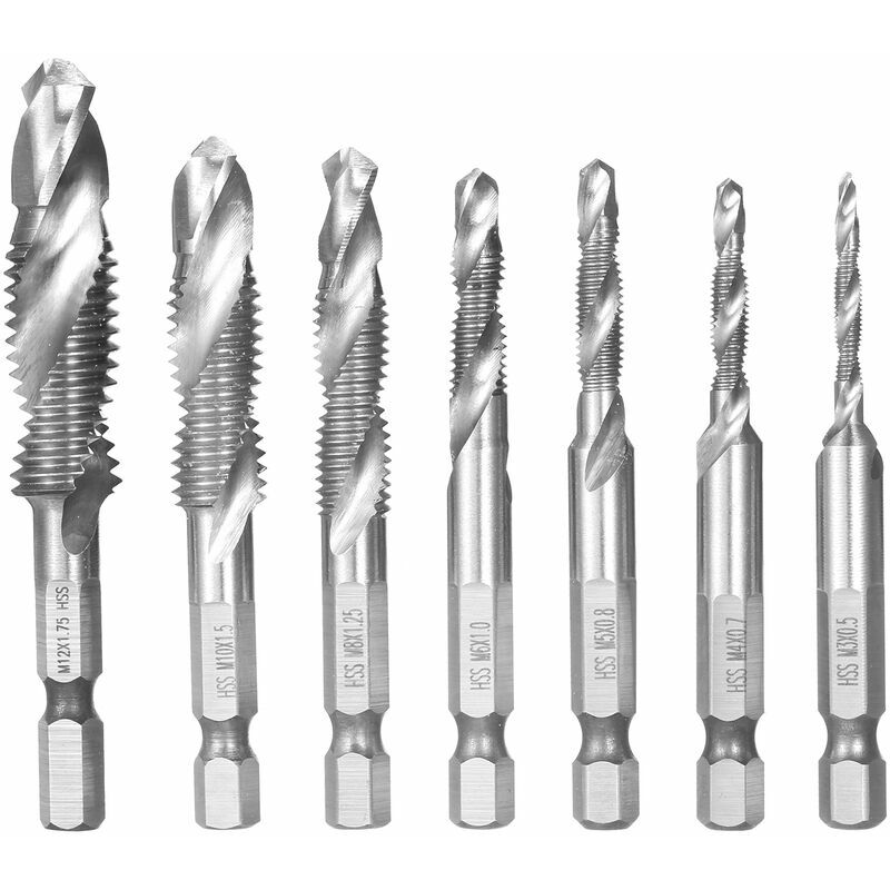 Caratteristiche: Set di punte multiuso - Confezione da 7 punte di maschiatura metriche di varie dimensioni (M3x0.5, M4x0.7, M5x0.8, M6x1 M8x1.25, M10x1.5, M12x1.75). Alte prestazioni - Foratura e maschiatura in un solo passaggio, riducono notevolmente le fasi di lavorazione e i costi di tempo, migliorano l'efficienza del lavoro. Ampia applicazione: set completo di punte per maschiatura ideale per forare, maschiare, tagliare legno, metallo tenero, lamiera di alluminio, ferro, ecc. (Nota: non può funzionare bene con acciaio inossidabile 304 o metallo ad alta durezza.) Qualità premium - Realizzato in acciaio ad alta velocità (HSS), elevata durezza, antiruggine, resistente e durevole. Cambio rapido: il gambo esagonale da 1/4 si adatta in modo più semplice e sicuro agli utensili elettrici. Specifica: Colore: nastro Materiale: acciaio ad alta velocità Diametro gambo: 1/4 in (6,35 mm) Quantità: 7 pezzi Tipo: punta per maschiatura Dimensioni: M3x0,5: lunghezza totale: 67 mm, lunghezza