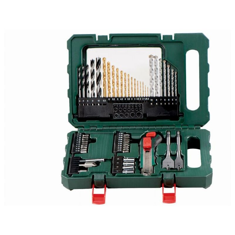 chiavi a bussola (4 pz): 1 x 7 mm, 8 mm, 9 mm, 10 mm 1 x dima, 1 x fresa trapezoidale, 1 x portabit magnetico, 1 x alesatore, 1 x adattatore per chiave a bussola Valigetta robusta e di alta qualità con design speciale Metabo