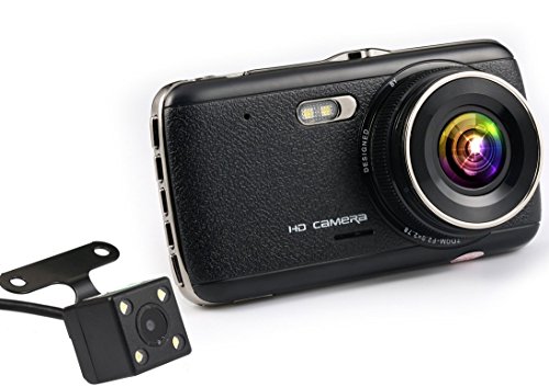 Accfly - Schermo IPS Full HD 1080p da 4” per cruscotto, F2.0, doppio obiettivo, DVR auto con fotocamera posteriore, grandangolare 170 gradi, visione notturna, LDWS, FCEWS, WDR, registrazione in loop, G-sensor