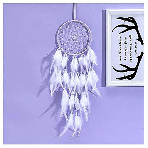 Acchiappasogni di Piume, Acchiappasogni Fatto a Mano, Acchiappasogni Grande, Acchiappasogni Tradizionale, Piume Dream Catcher Bambini per i Regali Delle Ragazze, Decorazioni per la Casa(Bianche)