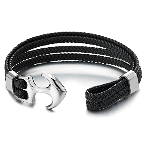 Acciaio Ancora Braccialetto Uomo Donna, Multi-Fila Nero Intrecciato Pelle Bracciale del Polsino, Fascia di Polso