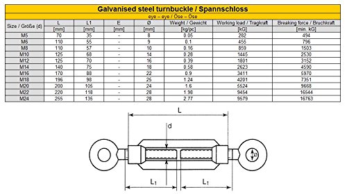 10 pz acciaio galvanizzato tenditore M16 fune arridatoio vite occhio - occhio