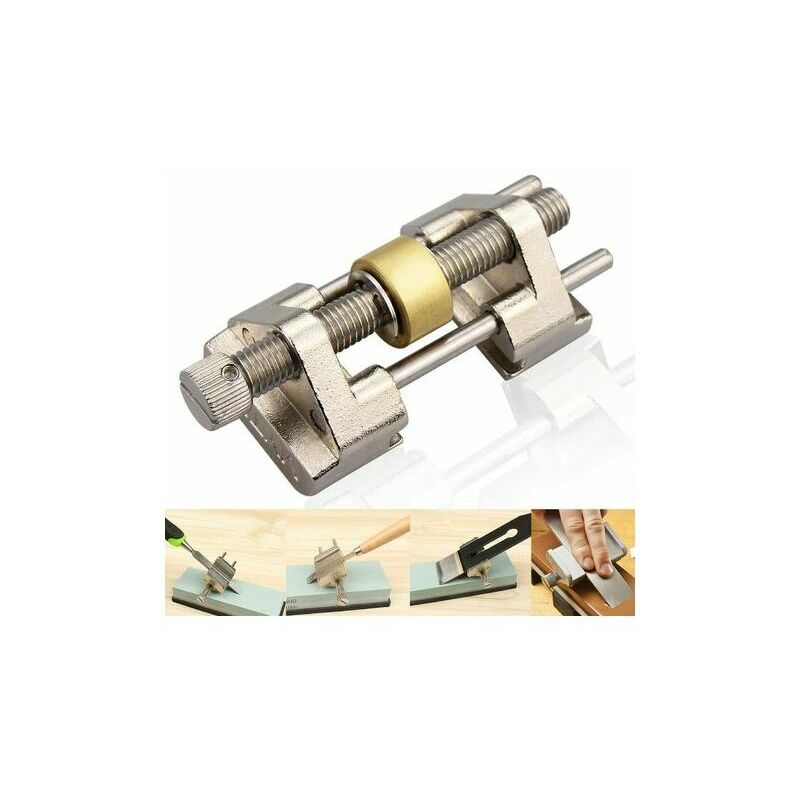 Rullo in ottone con anello di sicurezza, estremità aperta: design del rullo in ottone, retro e retro senza restrizioni durante l'affilatura, mantiene la stessa direzione, antiscivolo, liscio e sicuro. Roulette in ottone con anello di sicurezza, estremità aperta. Assicurarsi che i rulli non siano sfalsati durante l'affilatura, devono essere sempre centrati. Larghezza di serraggio regolabile: possibilità di regolare la larghezza di serraggio ruotando il tappo a vite.Intervallo di larghezza di serraggio: da 8 a 82 mm. Larghezza massima di bloccaggio della pialla: 82 mm. Larghezza massima di serraggio dello scalpello: 58 mm. Finemente lavorato e resistente: realizzato in acciaio inossidabile di alta qualità, non facile da arrugginire, resistente e resistente. Angolo fisso, facile da usare. Ruotare il tappo a vite in senso antiorario, attaccare lo scalpello o altri strumenti, montarlo e regolare l'angolo. Quindi serrare i tappi a vite in senso orario, il bordo della lama è saldamente