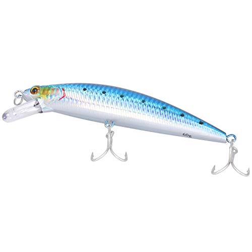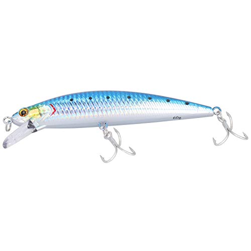 60g Acciaio inossidabile Tre ganci Esca dura Plastica Pesca di mare Affondamento Lure Simulazione artificiale Accessorio per esche per occhi(Blu)