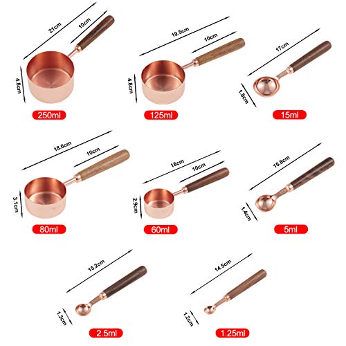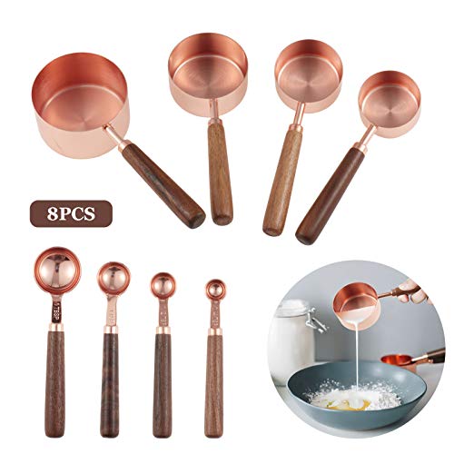 【8 pezzi essenziali da cucina】 Questi misurini e cucchiai da 8 pezzi sono accessori indispensabili per i fornai. Include tutte le misure coperte. Le misurazioni in "tazze" sono chiaramente incise nell'elegante manico del cucchiaio, che include le misurazioni in "ml" metrici e fornisce misurazioni accurate di qualsiasi ingrediente per tutte le vostre esigenze di cottura e pasticceria.