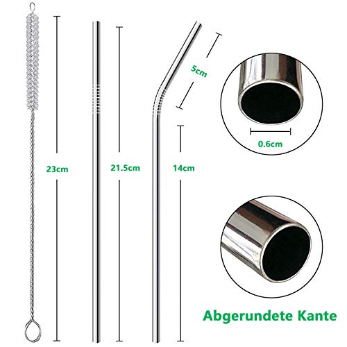 LA CONFEZIONE COMPRENDE: Il set di canuccia di mettallo contiene 6 cannucce diritte, 6 cannucce curve e 2 spazzole per la pulizia. Il diametro è di 0.23 Pollici. Sono ideali per cocktail, caffè, tè freddo, acqua potabile e molto altro ancora.