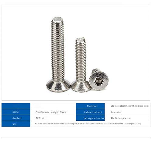 304 in acciaio inox testa svasata vite a esagono incassato bullone, tazza piatta vite a testa esagonale a testa svasata, DIN7991, M3M4M5M6M8-M5x16 * 20 pezzi