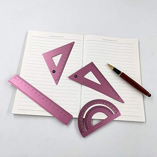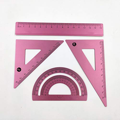 Accod Set di righelli in lega di alluminio, in acciaio inox, per matematica e geometria, 10,2 cm, per studenti, architetti, ingegneri e disegnatori (rosa)