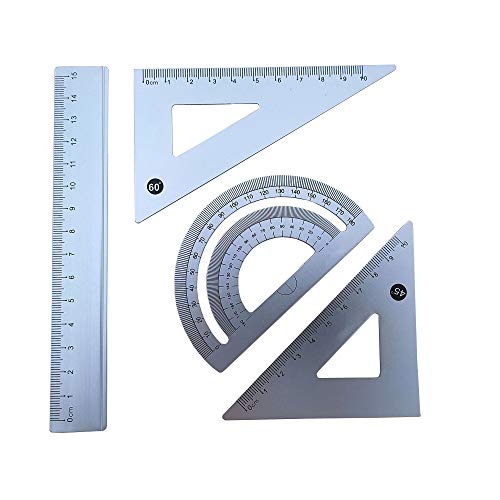 Resistenza all'usura e durata: realizzato in lega di alluminio di alta qualità, il set include un righello diritto in acciaio inox da 15 cm a 60 ° e 45 ° triangolo e un goniometro.