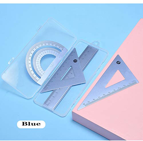 Accod - Set di righelli in lega di alluminio per matematica, geometria, righello per matematica, geometria, 10,2 cm, per studenti insegnanti, disegno e misurazione (blu)