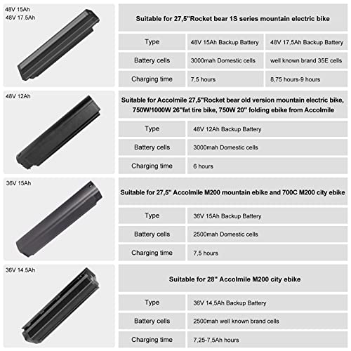 Accolmile Batteria di Ricambio per Bicicletta Elettrica 20" 27,5" 28" 700C, Batteria di Riserva per Bicicletta Elettrica Pieghevole, Mountain Bike Elettrica, City Bike Elettrica